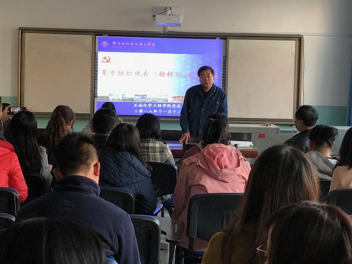 11月12日下午,石油化学工程学院于石化楼会议室组织全体教师观看《榜样3》专题节目,并进行了学习交流讨论,学习会议由石化院党总支书记呼小洲主持。