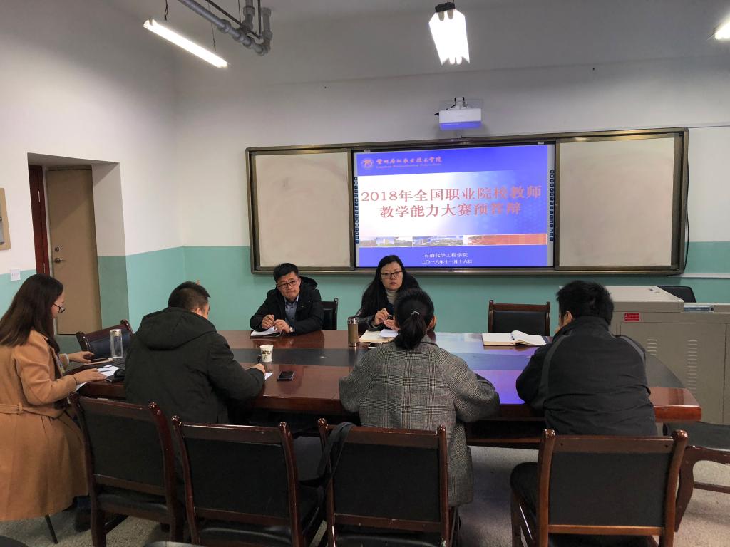 我校田华、周艳青、席满意团队是甘肃省唯一入围2018年全国职业院校教学能力大赛决赛的教学团队,为了在国赛中取得更好成绩,16号上午石油化学工程学院开展了2018年全国职业院校教学能力大赛赛前预答辩活动。院长李薇、院长助理赵立祥出席本次活动,石化院上一届信息化大赛获奖团队孟石、颉林、焦林宏团队参加。