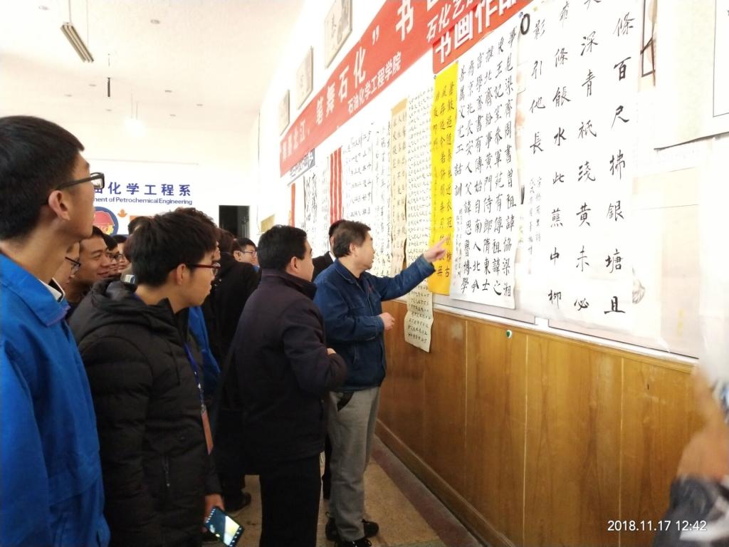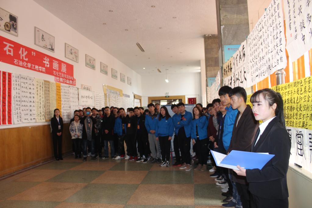 中华文化源远流长,书法就是民族艺术中的一朵惊艳之花。为传承并弘扬这一优秀的民族传统文化,营造良好的学习氛围,提高学生的书写质量和书写兴趣,丰富同学们的课余文化生活,增强大学生的文学艺术修养。石油化学工程学院艺韵书画协会于近日在西区大学生活动中心举办“舞墨北江·笔舞石化” 书画展,石油化学工程学院党总支书记呼小洲、书画协会指导老师姜璋出席了本次书画展。石油化学工程学院18级学生参与此次活动。