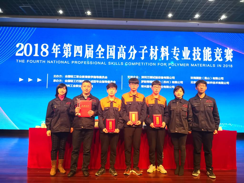 11月28日至12月1日,2018年第四届全国高分子材料专业技能竞赛在常州轻工职业技术学院成功举办,该赛事由全国轻工职业教育教学指导委员会主办、全国轻工行指委塑料成型专业指导委员会和常州轻工职业技术学院承办。由我校石油化学工程学院王有朋、张海亮、罗资琴、张歆婕4位老师及高分子合成技术专业的王久权、马万虎、顾岩等3名学生组成代表队参加了此项赛事。最终,3名参赛学生共获得1个个人全能特等奖、2个单项特等奖、2个单项一等奖、4个单项二等奖,并以优异的成绩勇夺大赛团体一等奖。王有朋、张海亮、罗资琴被评为“优秀指导教师”,张歆婕获“优秀裁判”荣誉。