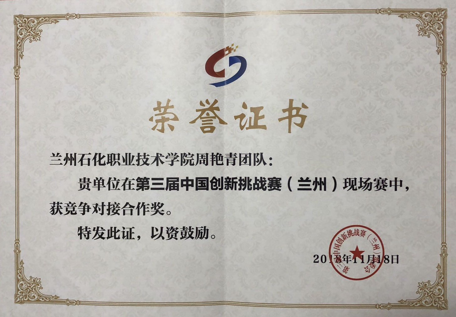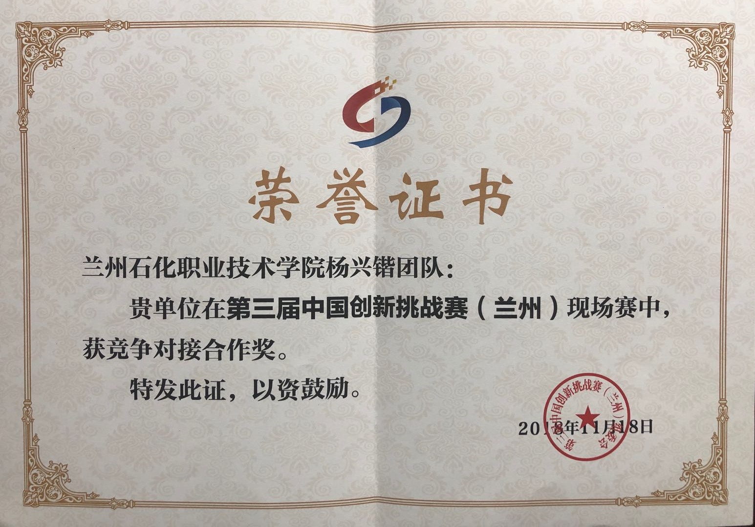 11月18日上午,“第三届中国创新挑战赛”在甘肃兰州举行。本届挑战赛经国家科技部指导,科技部火炬中心、兰州市人民政府、甘肃省科技厅承办,兰州市科技局组织,兰州生产力促进中心实施的国家级赛事。我校教师杨兴锴团队和周艳青团队以优异的成绩获竞争对接合作奖。