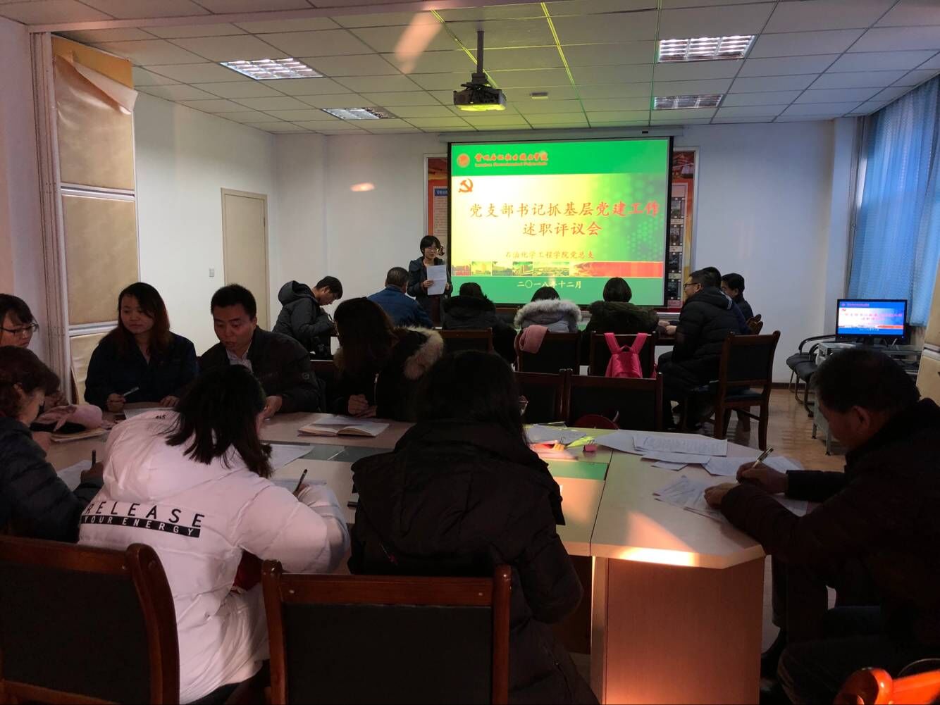 根据学校党委《关于印发<中共兰州石化职业技术学院委员会2018 年度基层党组织书记抓基层党建工作述职评议考核工作方案>的通知》》(党发〔2018〕48号)的文件精神,12月17日下午,石油化学工程学院党总支在东主教208组织召开支部书记抓基层党建述职评议考核会,各支部党员参加了会议,会议由党总支书记呼小洲主持。