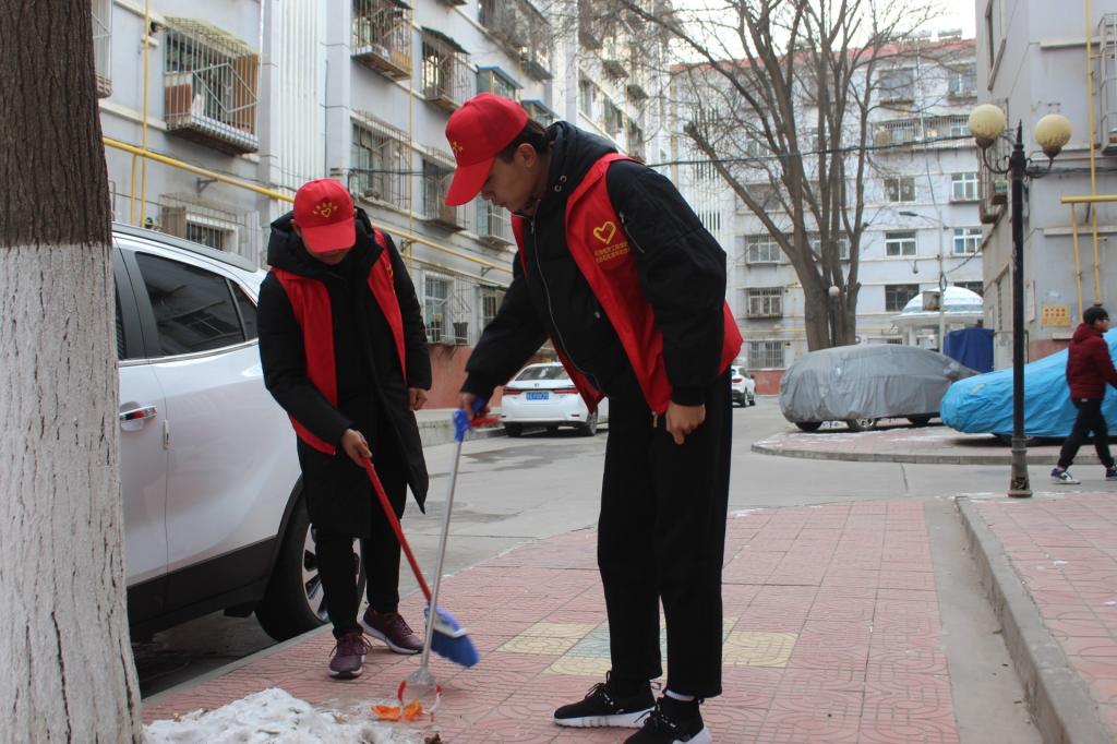 虽然天气异常寒冷,但我院志愿者们都积极参加,拿着笤帚、簸箕、夹子,等清扫工具,清理烟头、塑料、纸片。志愿者们分两批,从社区中心向两边开始清理,志愿者们分工合作,积极参与,展开了地毯式清理,不放过任何一个角落。纵使天气寒冷,但志愿者们都不曾有过一丁点的抱怨,大家积极向上,仔细认真的将社区打扫干净,将精神文明发展放为第一步,将干净卫生做为个人行为习惯。活动结束,青年志愿者们通过自己的劳动获得了社区人员的赞美。
