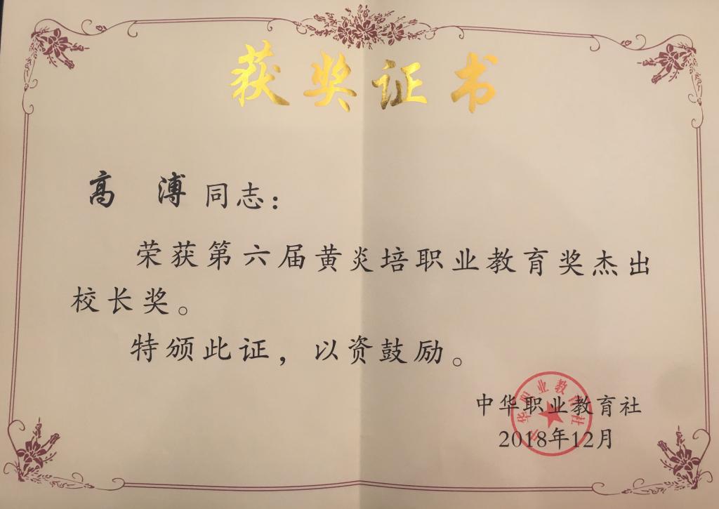 黄炎培职业教育奖是我国职业教育领域唯一的全国性奖项,旨在表彰积极弘扬和践行黄炎培职业教育思想、推动我国职业教育事业做出突出贡献的优秀单位和杰出个人。此次评选自2018年5月份开始,经过推荐审核、评审委员会评审、网上公示后确认等环节,共评出全国优秀学校奖80个、杰出校长奖50个、杰出教师奖200个、卓越推动奖1个、产教融合优秀企业奖4个、优秀理论研究奖4个。我校高溥校长荣获“杰出校长奖”,石油化学工程学院院长李薇荣获“杰出教师奖”。同时获得2项殊荣,彰显了我校在职业教育领域的办学影响力。