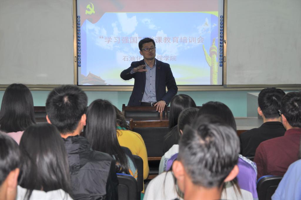 为深入学习贯彻习近平新时代中国特色社会主义思想,做好“学习强国”学习平台推广、使用工作,石油化学工程学院于近日在化工楼309会议室召开“学习强国”党课教育培训会。院长助理赵立祥主讲,全体在校学生党员参加了培训会。