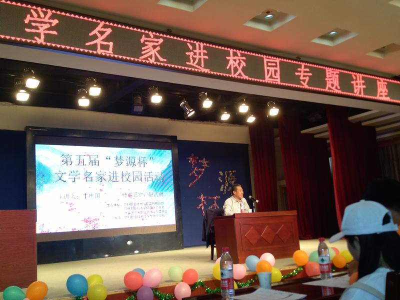 上午10点30分活动开幕式准时开始,随后进行现场征文比赛,我社三名代表代表朝露文学社参加征文比赛,在所征题目“述国情怀”与“青春校园那点事儿”二选一进行现场发挥写作。下午2点30分进行文学名家论坛会,由牛庆国老师主讲,特邀嘉宾赵武明老师总结,讨论了诗歌的意义及做人与会做人的忠告,同时鼓励所有文学爱好者继续爱文学,将各个文学社越办越好。在论坛结束后,各大高校社团合影留念。我社代表单独与牛庆国老师和苏文力老师合照留念,向他们介绍了兰州石化职业技术学院及石油化学工程学院朝露文学社,同时与老师们交流了文学社团发展的见解。