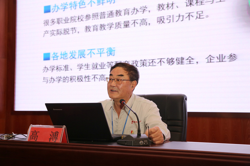 高溥围绕方案的重点内容,从现代职业教育体系、完善职业教育国家制度标准、促进产教融合校企“双元”育人、建设多元办学格局、完善技术技能人才激励保障政策、加强职业教育办学质量督导评价等方面进行了精辟的分析。他特别强调,要凝聚部门合力,加强组织协调,实现以点带面,推动学校改革,提升培养质量,激励企业参与,推动多元办学。