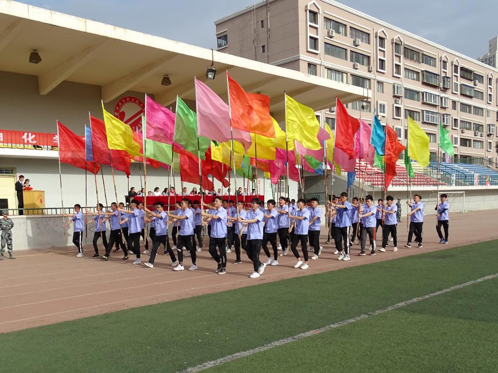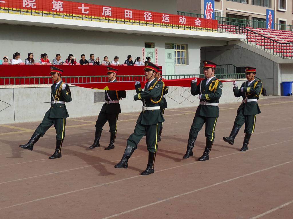 伴随着礼炮声进行的是精彩的入场式,走在最前面的是国旗队,他们走着铿锵有力的正步,气宇轩昂、精神抖擞,体现着勇往直前的精神风貌。紧随其后的是彩旗队,彩旗迎风飘扬,展现着更高、更快、更强拼搏精神。
