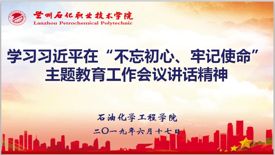 6月17日下午,石油化学工程学院于石化楼会议室组织全体教师学习习近平总书记在“不忘初心、牢记使命”主题教育工作会议上的重要讲话精神,学习会议由石化院办公室副主任席满意主持。