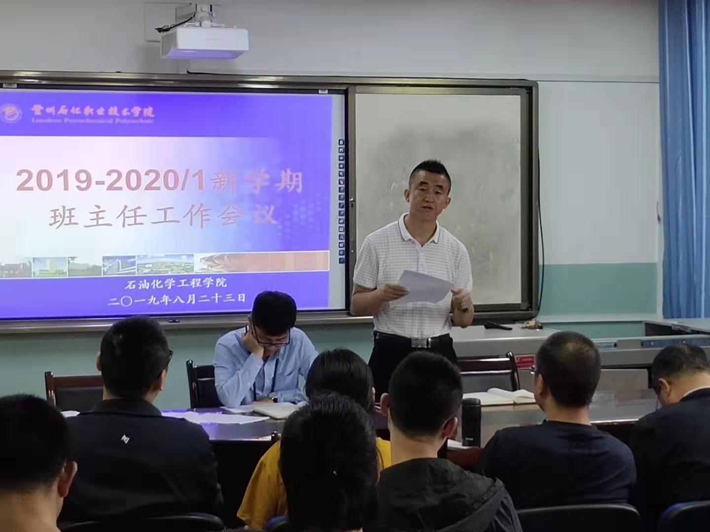 为了新学期学生管理工作开好头、起好步,确保各项学生工作顺利开展,8月23日上午,石油化学工程学院在会议室召开了辅导员班主任工作会议,党总支副书记赵立祥、办公室副主任席满意、学院全体辅导员及17、18级班主任参加了会议,会议由赵立祥主持。