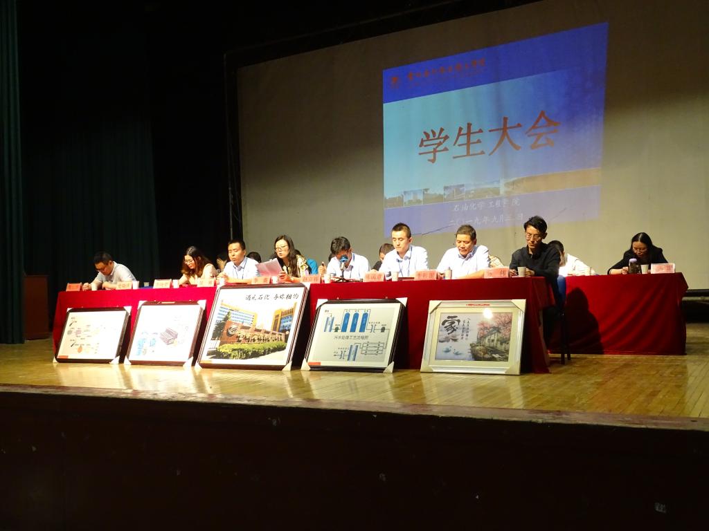 为推动石油化学工程学院教学管理工作及学生管理工作再上新台阶,石油化学工程学院于近日在西区礼堂开展新学期学生大会,石油化学工程学院院长李薇、党总支副书记赵立祥、办公室人员以及17、18级班主任、17级部分学生和18级全体学生参加此次大会。大会由李薇主持。