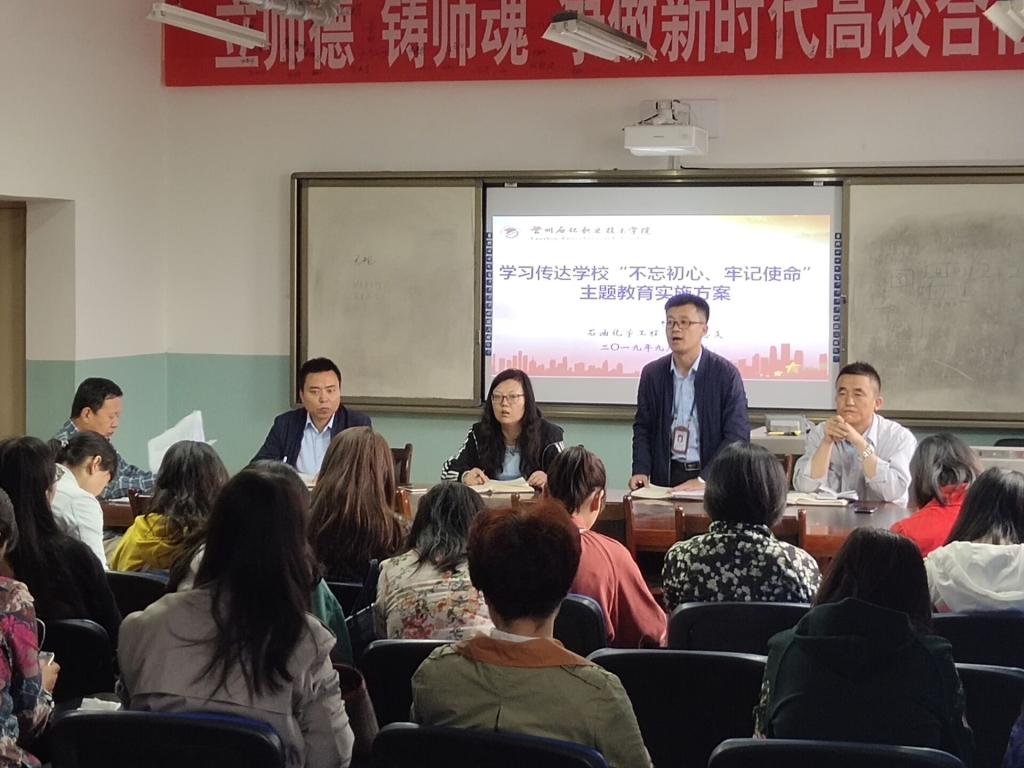 9月16日下午,石油化学工程学院于石化楼会议室组织全体教师学习传达学校“不忘初心、牢记使命”主题教育实施方案。