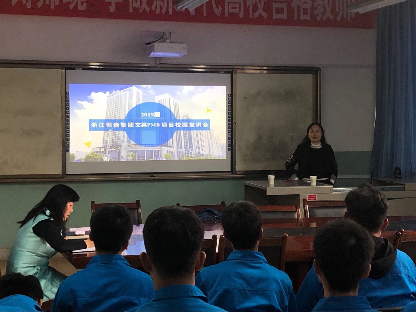 会后,赵辅珍副部长到化工楼三楼会议室给石油炼制技术专业恒逸现代学徒制班191进行企业文化宣讲,赵部长就恒逸文莱PMB项目、人力资源政策以及在文莱的员工生活条件等方面给同学们作了详细的介绍和解读。