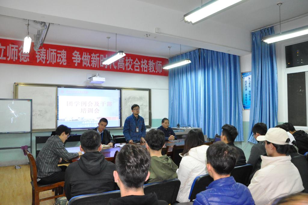 为了提高学生干部的工作能力,强化责任意识,石油化学工程学院于近日在石化楼309组织开展团学干部培训会议,学院党总支副书记赵立祥、办公室副主任席满意、辅导员李胜泥、马伟及团学全体学生干部参加培训会。