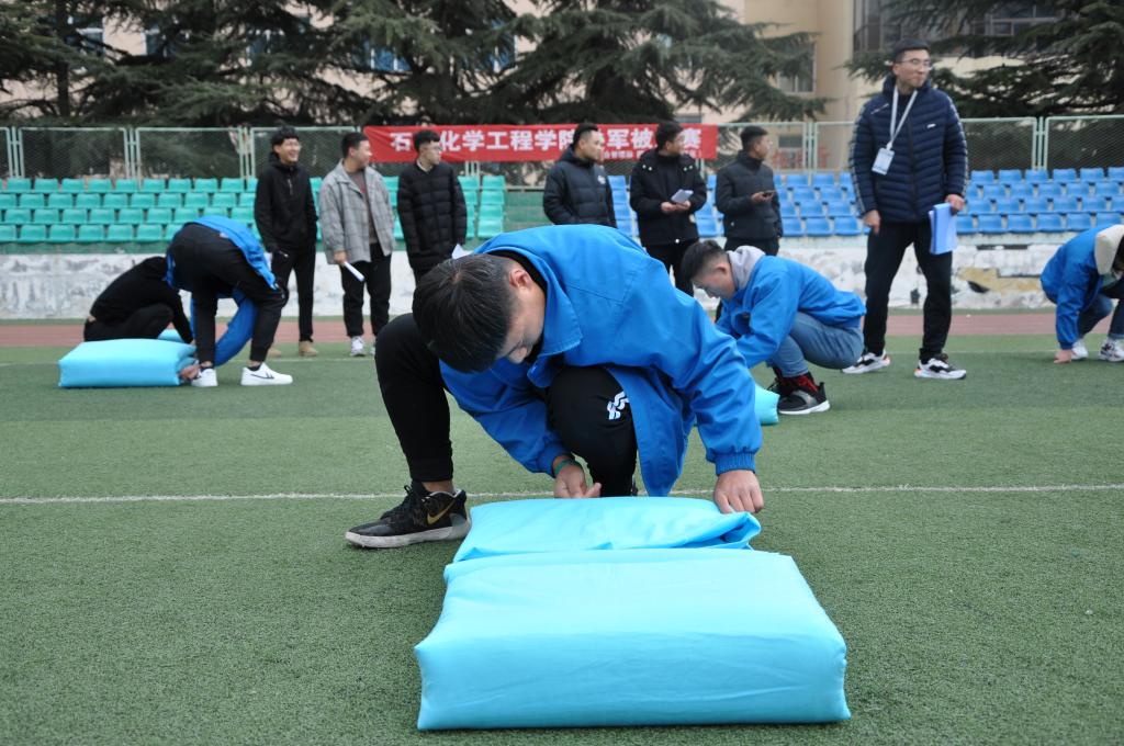 青春成就梦想,实践助我成长,为了进一步巩固19级学生的军训成果,加强学生的宿舍文化建设,丰富课余生活,美化学生的生活场所,使学生的整体素质得到全面提高,形成良好的校风,石油化学工程学院于近日在西区操场举办叠军被大赛。团学干部担任此次大赛评委。19级部分学生参加了本次比赛。