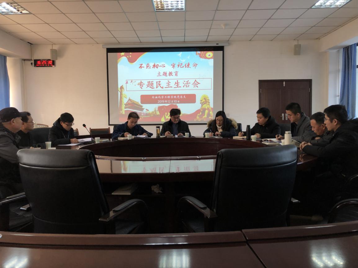12月10日下午,石油化学工程学院党总支在学校东区备课中心召开了“不忘初心、牢记使命”主题教育专题民主生活会,学校党委副书记、校长高溥到会进行指导。会议由石油化学工程学院党总支副书记赵立祥主持,领导班子成员进行了对照分析,开展批评与自我批评,教研室主任、党员代表列席了会议。