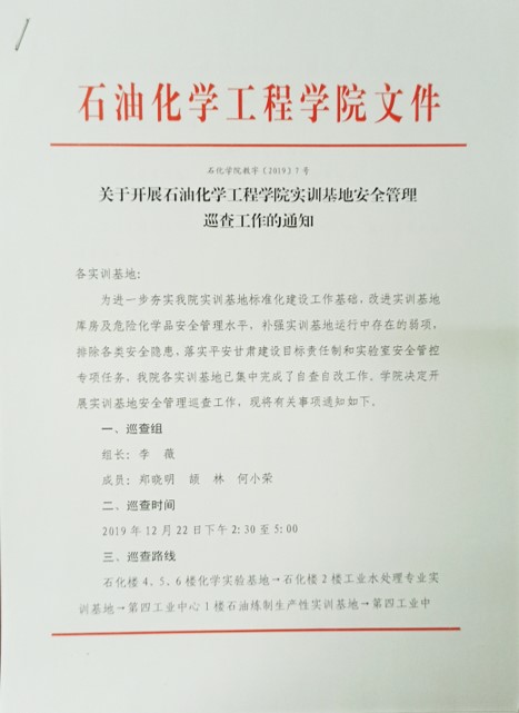 为进一步夯实实训基地标准化建设工作基础,改进实训基地库房及危险化学品安全管理水平,补强实训基地运行中存在的弱项,排除各类安全隐患,落实平安甘肃建设目标责任制和实验室安全管控专项任务,石油化学工程学院于12月21日上午组织召开了实训基地安全管理工作推进会,各教研室主任、副主任和各实训室管理教师参加了会议,会议由院长助理郑晓明主持。