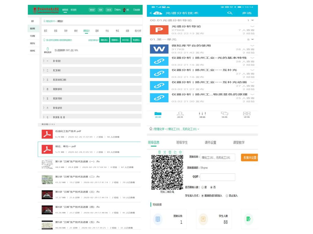 根据课程特点,分院各教研室、教学团队在中国大学MOOC课程、学银在线和学习通等教育部公布的在线课程平台选择适宜的课程。配合智慧职教、云班课、微知库教等线上教学平台,精心准备与上传各类教学材料和资源,包括课程PPT、微视频、教案、试题库、作业、学习任务单等。同时,利用校企合作优势,动员任课教师加入蓝墨云班课、超星学习通、智慧职教、智慧树交流微信群,请教企业技术人员解决线上上课问题,保障线上与线下教学效果。