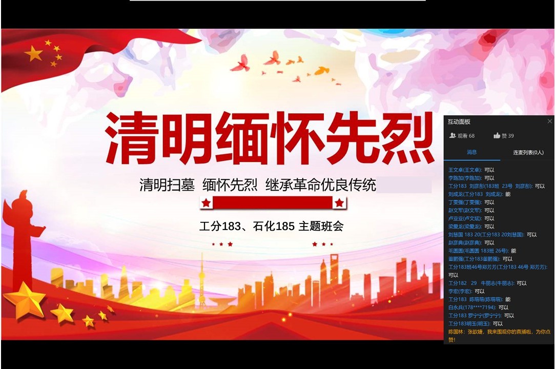 为贯彻落实中央和省委省政府关于疫情防控期间少出门、不聚集等有关要求,营造文明、环保、节俭、安全的良好祭祀氛围,石油化学工程学院以弘扬中华民族传统文化、推进社会主义核心价值体系建设为目标,开展以“缅怀先烈、勇于担当、共克时艰”为主题的线上缅怀纪念活动,增强学生为国分忧、为民解难的责任感和振奋民族精神、弘扬民族文化的使命感。