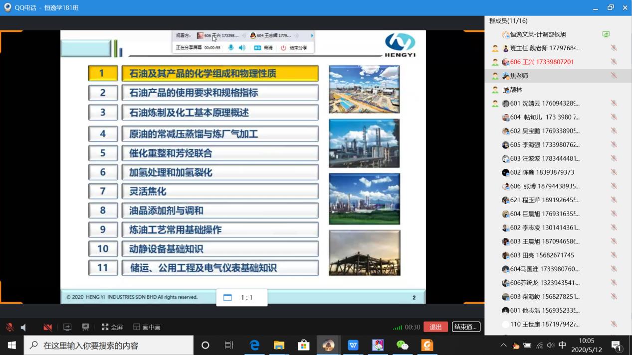 5月11日-22日,恒逸企业专家导师杨政、杨仕海、李厚亮等多次通过QQ、钉钉直播方式,面向恒逸(文莱)现代学徒制181班全体学生,开展了常减压蒸馏、柴油加氢等多套装置生产技术的讲座,让学生们了解了企业实际生产技术,学生纷纷表示受益匪浅。