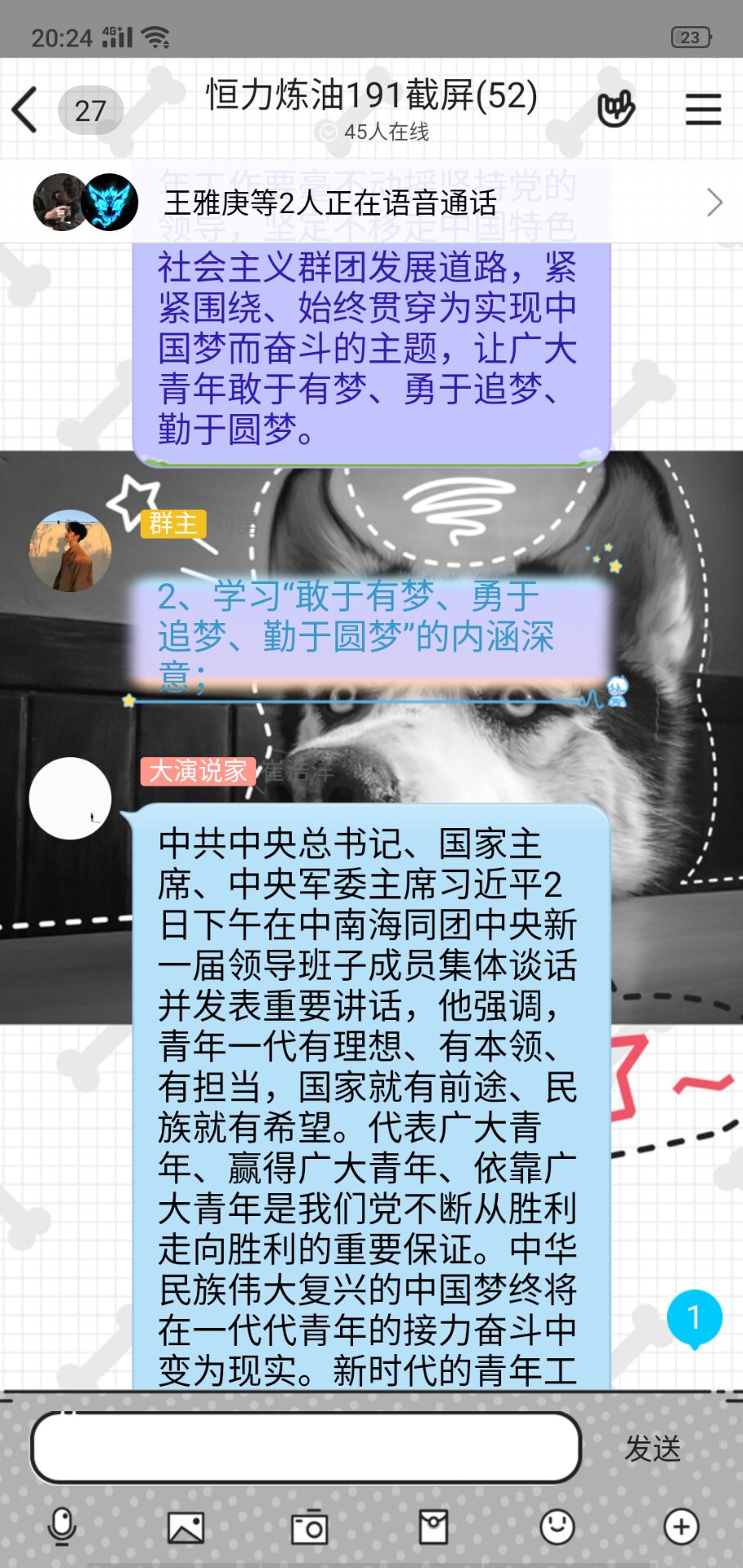 为深入推进青年大学生爱国、创新意识,石油化学工程学院于6月7日19:30组织19级学生通过通过QQ群、微信群或者其他网络媒体,开展以“敢于有梦、勇于追梦、勤于圆梦”为主题的线上主题团日活动。