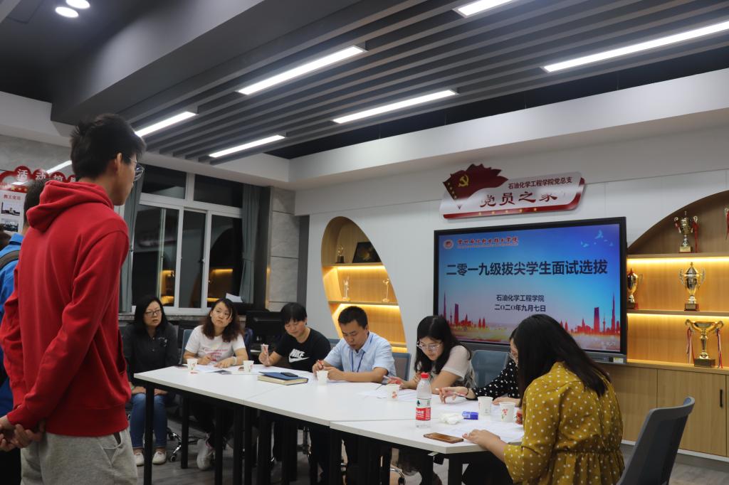 9月7日晚,石油化学工程学院对学生进行了面试,采取5人一组的小组面试法,即5名随机组合的学生同时入场进行面试,分别来自分院的各专业老师对学生的专业素质、逻辑思维能力、心理素质、专业志向等方面进行评定。在近一个小时的面试时间里,考生们充分展现了他们各自的才能。同学们都表示此次面试形式独特,问题灵活,尤其加入了专业志向的考评,更有利于选拔出真正热爱专业,并今后有志于从事相关领域工作的学生。面试结束后,分院的老师分别根据笔试成绩、面试成绩的,挑选优秀学生参加甘肃省第八届化学竞赛,并进入石油化学工程学院第八届拔尖班培养。