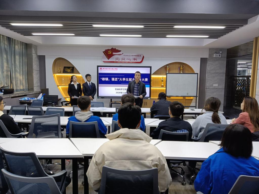 为深入贯彻落实习近平新时代中国特色社会主义思想和党的十九大精神,把“保就业、稳就业”放在突出位置,石油化学工程学院于近日在化工楼二楼开展“雄镇强匠”杯大学生创新创业院级赛,19级部分学生参加。