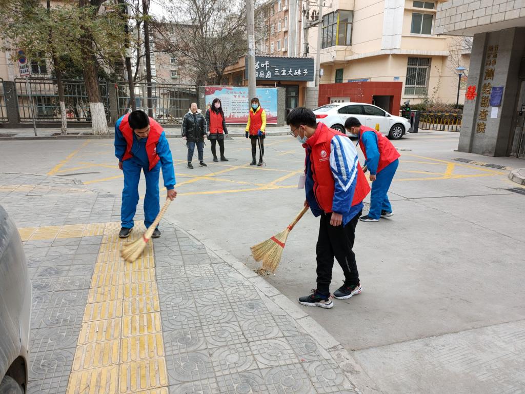 活动开始之前,爱溢石化志愿者协会负责人提前联系了社区居委会,取得了对方负责人的信任和工作上的支持和相互配合,并根据参加活动人数以及需要清理场地的范围进行了明确的分工,同时对一些细节问题进行了详细交代。在志愿者服务过程中,成员们有些清理脏垃圾,改善社区环境卫生;有些对弱势群体进行社会慰问,为他们提供生理心理的帮助。除此以外,他们也提醒居民不能忽略疫情防范,要注意平时勤洗手,出门戴口罩等等。志愿者们之间相互配合,甚是默契。虽然“汗水与尘土齐飞”,但是同学们脸上都洋溢着快乐的笑。