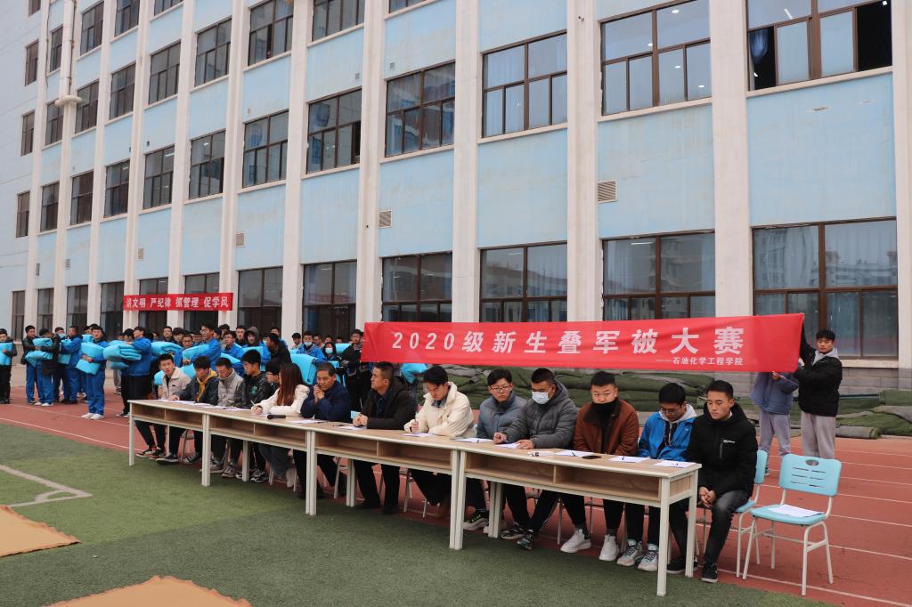 为了丰富大学生校园文化生活,塑造良好的宿舍环境,健全宿舍卫生标准,完善学院管理,给学生提供展现自我的平台。石油化学工程学院于近日在西区操场举办2020级新生叠军被大赛。团学负责人、辅导员及20级部分学生参加。