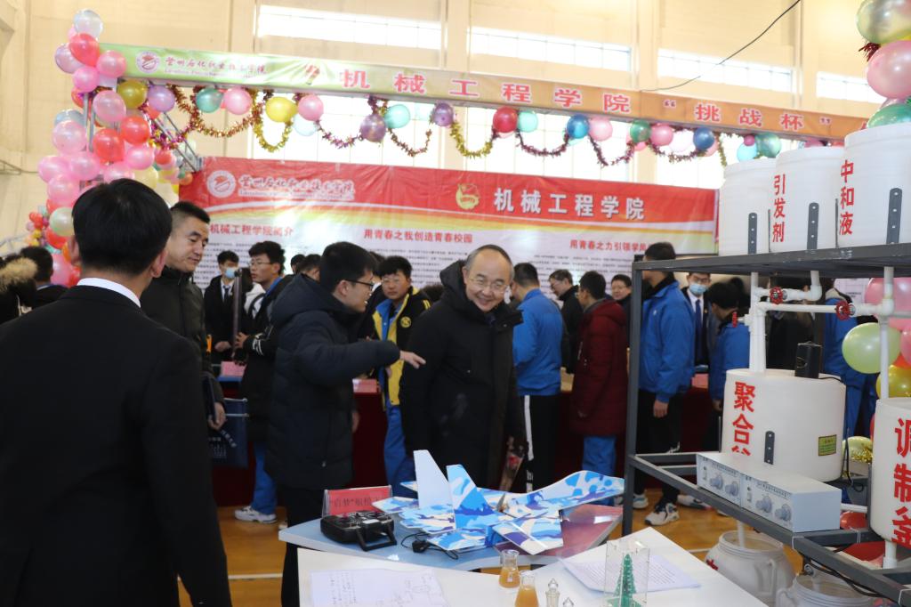 “大学生挑战杯”是省内规模最大、最具影响力的大学生科技创新性赛事。挑战杯的举办,是对一所学院创新性的展示与挑战,同时它也提供了一个各高校之间交流的平台,以此来促进、激励各校的创新意识与发展。展会伊始院长高溥为本届挑战杯致辞,他对参加本次活动的领导、老师、以及各院学生表示最热烈的欢迎,其次对我校学子的创新发明表示赞赏与鼓励,希望我校学子积极踊跃的参加我们的科创活动,因为科技是国家强盛之基,创新是民族进步之魂。本次挑战杯作品涵盖了科技发明制作与自然科学类学术论文。我院的各个项目展示着石油化学工程学院的特色学科,也展现出了我们的实力,其中在化学、学生的发明创作方面尤为突出。在展出期间校领导对我院各类作品给予肯定,同时也提出了宝贵的意见,这对我院接下来科创方面的工作有着指导意义。最终在本届“挑战杯”,石油化学工程学院凭借着我院特色学科取得优异成绩,展现石化风采。