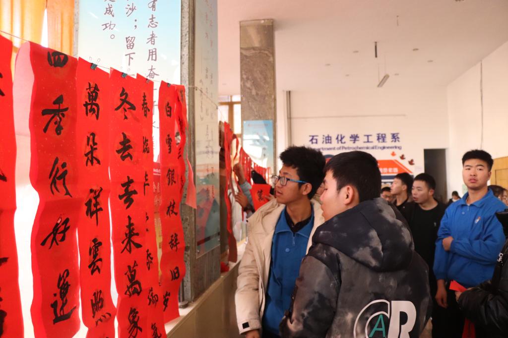新年对每一个人都是一个总结过往、迎接未来的分界点。在这个一年中最特殊的时间,我们充满了欢乐与祥和,可以让疲惫一年的身心得以放松,可以为新一年的工作学习养精蓄锐。为了迎接这个喜庆的节日,石油化学工程学院艺韵协会主动书写春联,为各位老师、同学送上了新春的祝福,以此来感谢各位老师、同学在过去一学年内为二级学院各项工作的付出与努力。春联虽小,但包含了分院对于大家的新春祝福与感谢,同时也让大家提前感受到了“年味”。