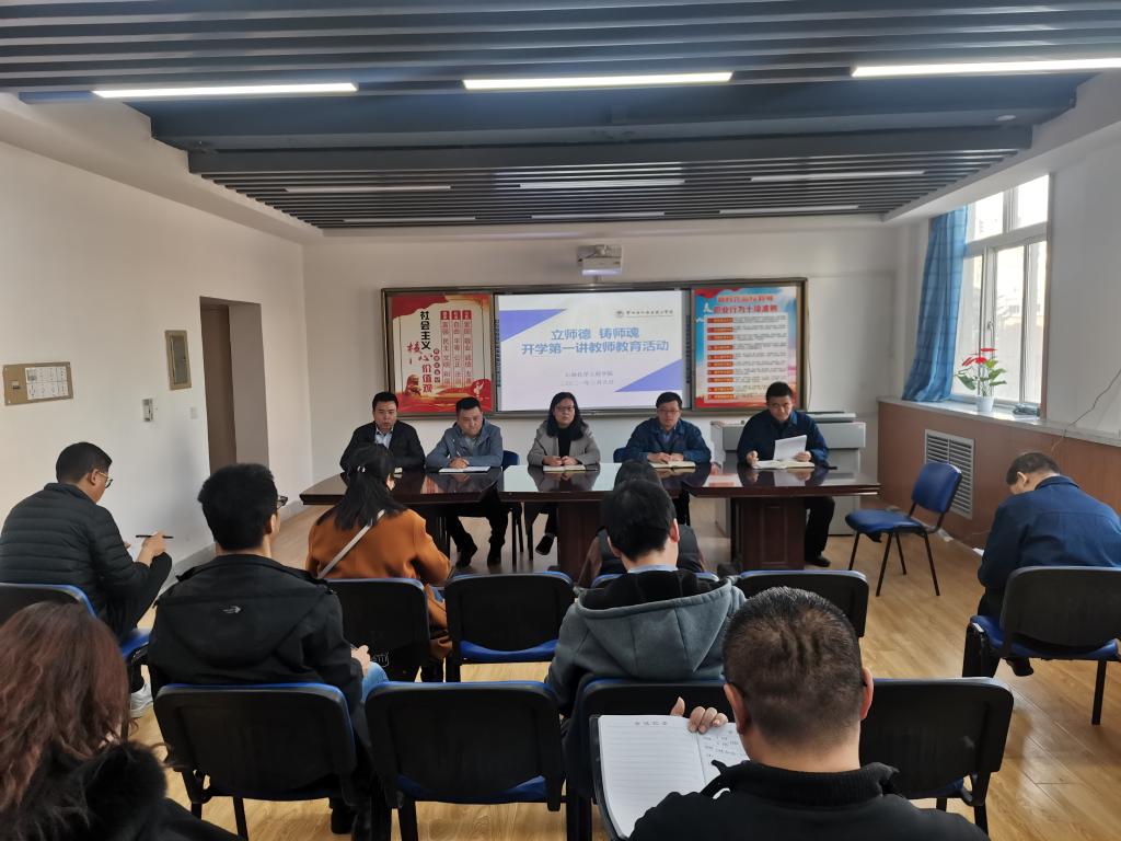 为全面落实甘肃省教育厅关于开展“立师德 铸师魂开学第一讲”教师教育活动的通知精神,提升学院教师的师德水平,3月8日下午,石油化学工程学院在化工楼309会议室开展“立师德铸师魂开学第一讲”教师教育活动。会议由石油化学工程学院院长李薇主持。