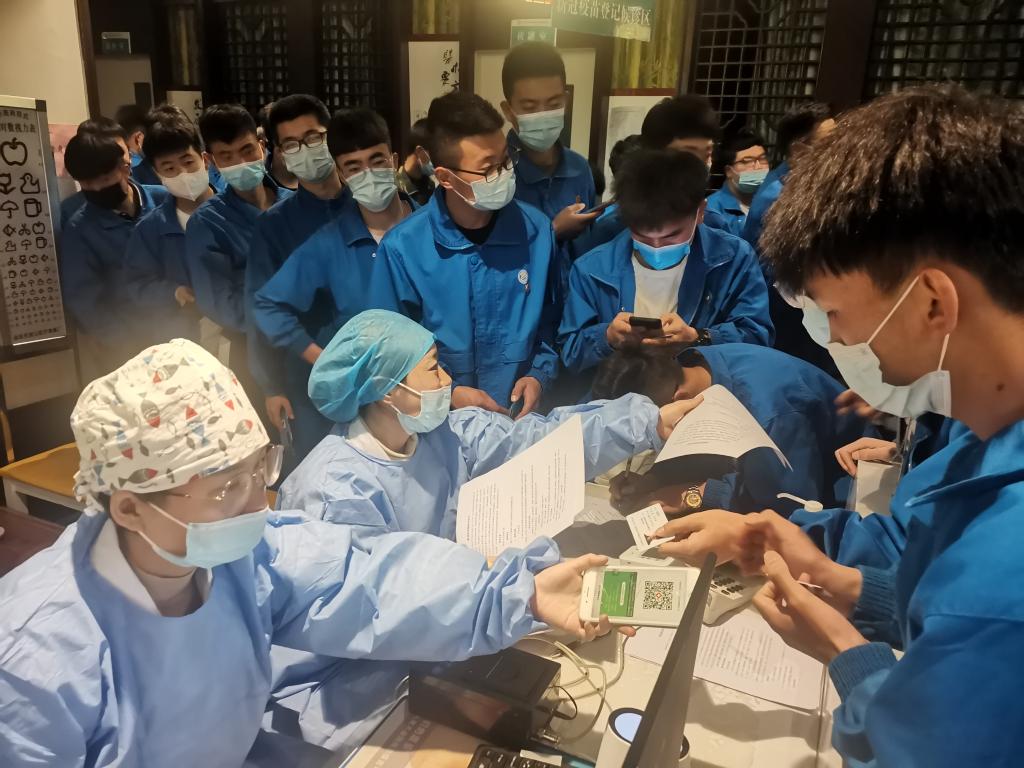 3月25日,石油化学工程学院组织160余名学生到当地社区医院接种新冠疫苗。