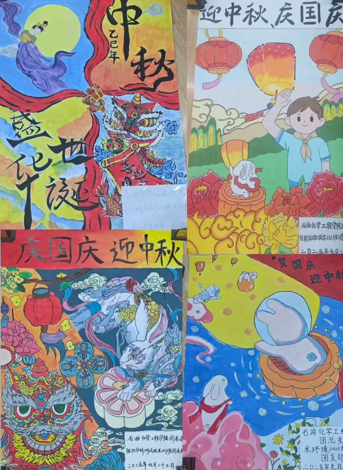 为弘扬中华优秀传统文化,礼赞祖国华诞的辉煌成就,进一步丰富学生校园文化生活,展现新时代青年学子的创意巧思与深厚家国情怀,石油化学工程学院联合“一站式”学生社区于2025 年 9 月 26日—29日在化工楼举办了“庆国庆,迎中秋” 主题海报设计大赛。