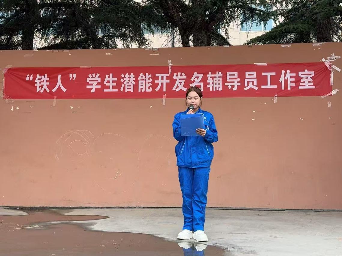 弘扬“铁人精神”,厚植爱校情怀。作为本次活动的主讲嘉宾,辅导员史老师围绕“铁人精神”作了主题教育宣讲。她从“铁人精神”的历史渊源与现实意义切入,强调爱校护校、树立主人翁意识的重要性,并号召广大2025级新生将个人成长融入学校发展,以坚韧的信念和务实的学风担当时代赋予的责任。校徽不仅是一枚学校标识,更是一份人生承诺。新生代表有序上台,辅导员老师们郑重地为他们佩戴上象征身份与责任的校徽,胸前的校徽在晨光中闪耀,象征他们在石化大学将开启一段新的求学与成长旅程。之后,在史老师带领下,全体新生齐声宣读校训,铿锵有力的誓言不仅是对学校文化的深刻铭记,更是对传承学校文化精神、矢志奋斗的庄严承诺。
