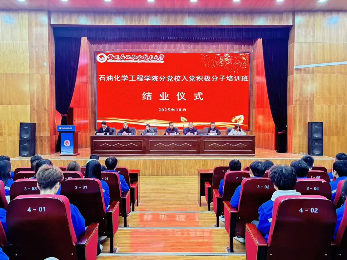 10月23日,石油化学工程学院分党校2025年入党积极分子培训班结业仪式顺利举行。仪式上,学院党委负责人对全体入党积极分子在培训期间的表现给予了充分肯定,对顺利结业的入党积极分子和优秀学员表示祝贺并寄予殷切希望。他指出,培训不等于入党,考试不等于考查,及格不等于合格,结业不等于毕业,学员们要进一步坚定理想信念,提升党性修养。一要以“真学真信”铸牢信仰之基,持续加强理论学习,练好内功、修好外功;二要以“实干担当”扛起时代之责,以“功成不必在我”的境界涵养初心,以“功成必定有我”的担当践行使命。三要以“枝叶关情”永葆为民之心,主动走进同学、深入师生,用“办事如办家事”的态度为身边人排忧解难。四要以“严于律己”守住立身之本,严格遵守校纪校规和党纪党规,不越“红线”、不碰“底线”,做到言行一致、表里如一。