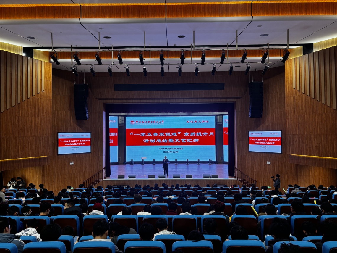 为深入推进学生综合素质提升,营造笃学奋进、全面发展的校园氛围,石油化学工程学院于2025年12月10日在西校区“一站式”学生社区举办了“一学五查双促进”素质提升月活动总结暨文艺汇演。学院领导、辅导员、班主任及700余名在校生齐聚现场,共同回顾活动成果,畅享文艺盛宴。