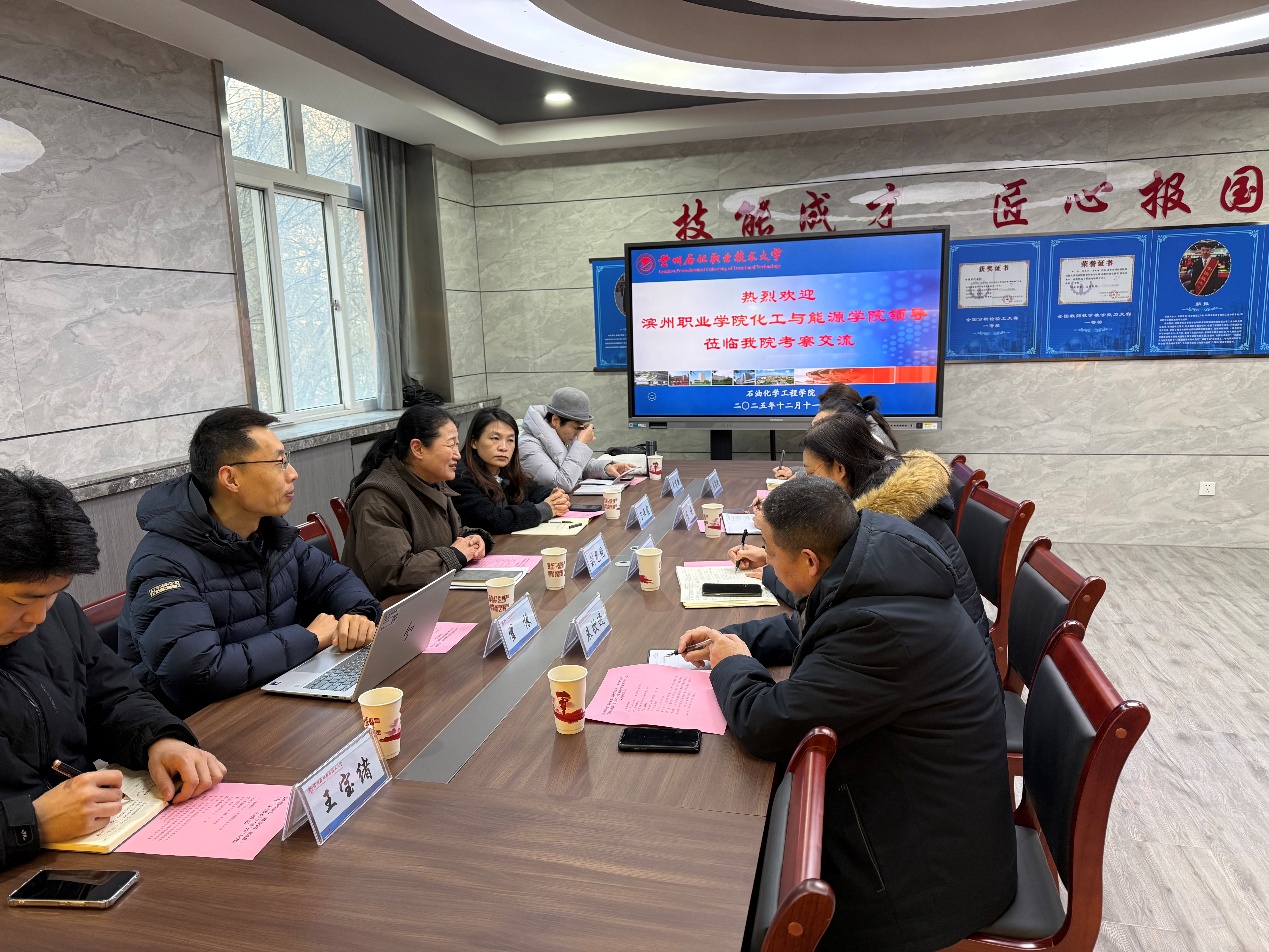12月11日上午,滨州职业学院化工与能源学院院长刘光艳、滨化集团首席人力资源官丁云霞等一行五人莅临我校石油化学工程学院开展考察交流。石油化学工程学院和应用化学工程学院相关负责人参加座谈。